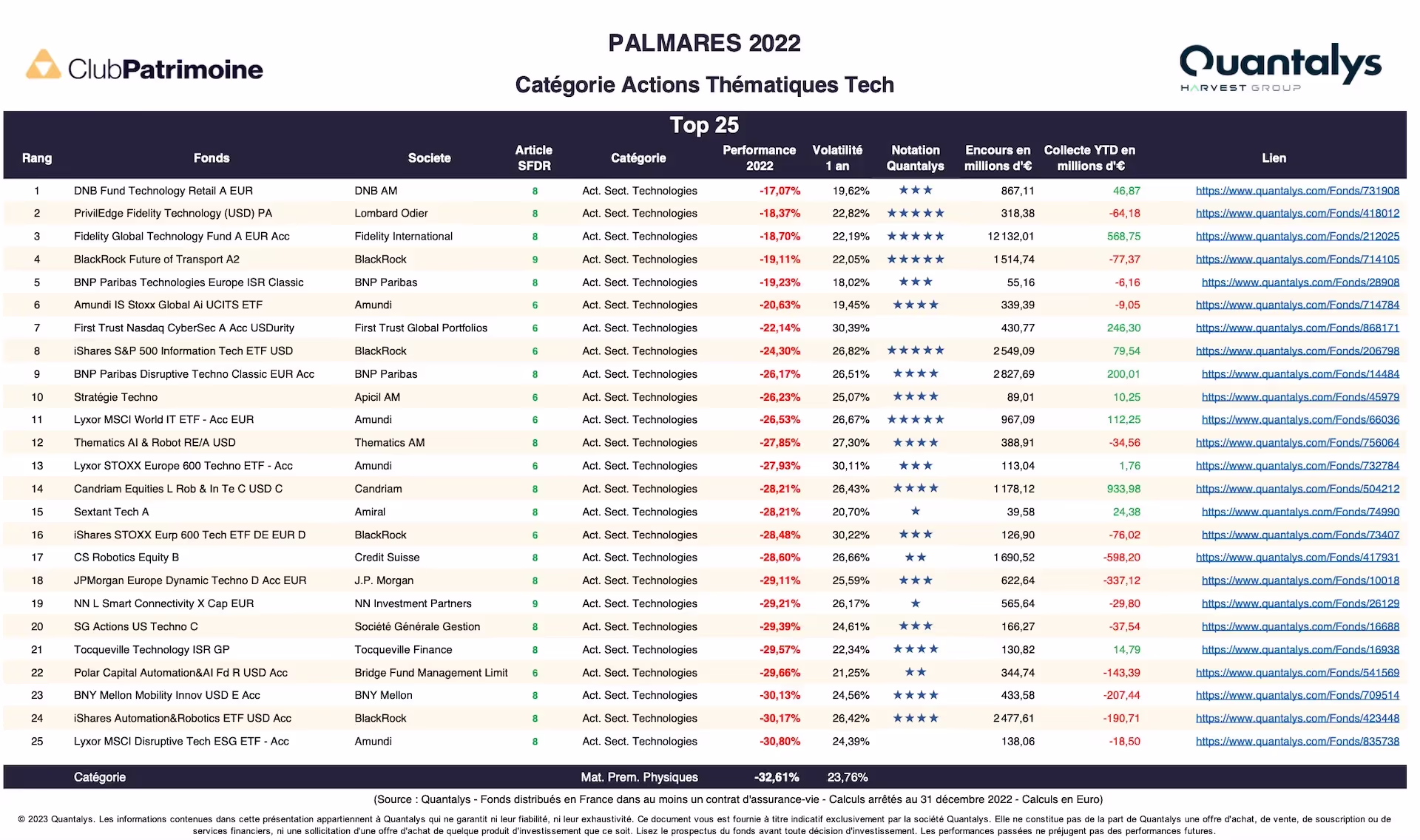 Palmarès 2022 : Les meilleurs fonds Actions Thématiques Tech