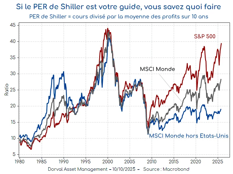 Ces niveaux de valorisation impliquent que la performance future des actions américaines sera nettement moins bonne à l’avenir. Elle pourra cependant rester décente si les grands oligopoles – dont en particulier ceux de l’économie numérique – parviennent à maintenir leur profitabilité exceptionnelle. Mais le boom exponentiel des investissements en intelligence artificielle rend cette hypothèse plus fragile, ne serait-ce que par la dégradation des marges d’autofinancement que ces dépenses provoquent.